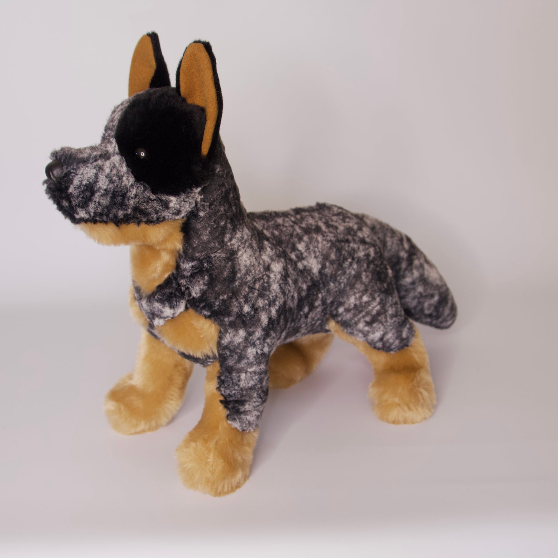 When it comes to keeping a herd of livestock in line, no one does it better than Bolt, our Australian Cattle Dog stuffed animal! Developed from English herding dogs and Australian Dingoes, these dogs are passionate about their work and excel at thinking for themselves. True to his breed, Bolt sports a beautiful blue merle coat and alert, stand up ears. Tan markings accent his chest and legs while black patches add character to his face. Bright, amber colored eyes and a stand up pose reveal the energetic personality of our handsome plush Heeler. Ultra soft materials and resilient polyester fill within make Bolt an appealing friend to cuddle up with at the end of the day when all the work has been done!