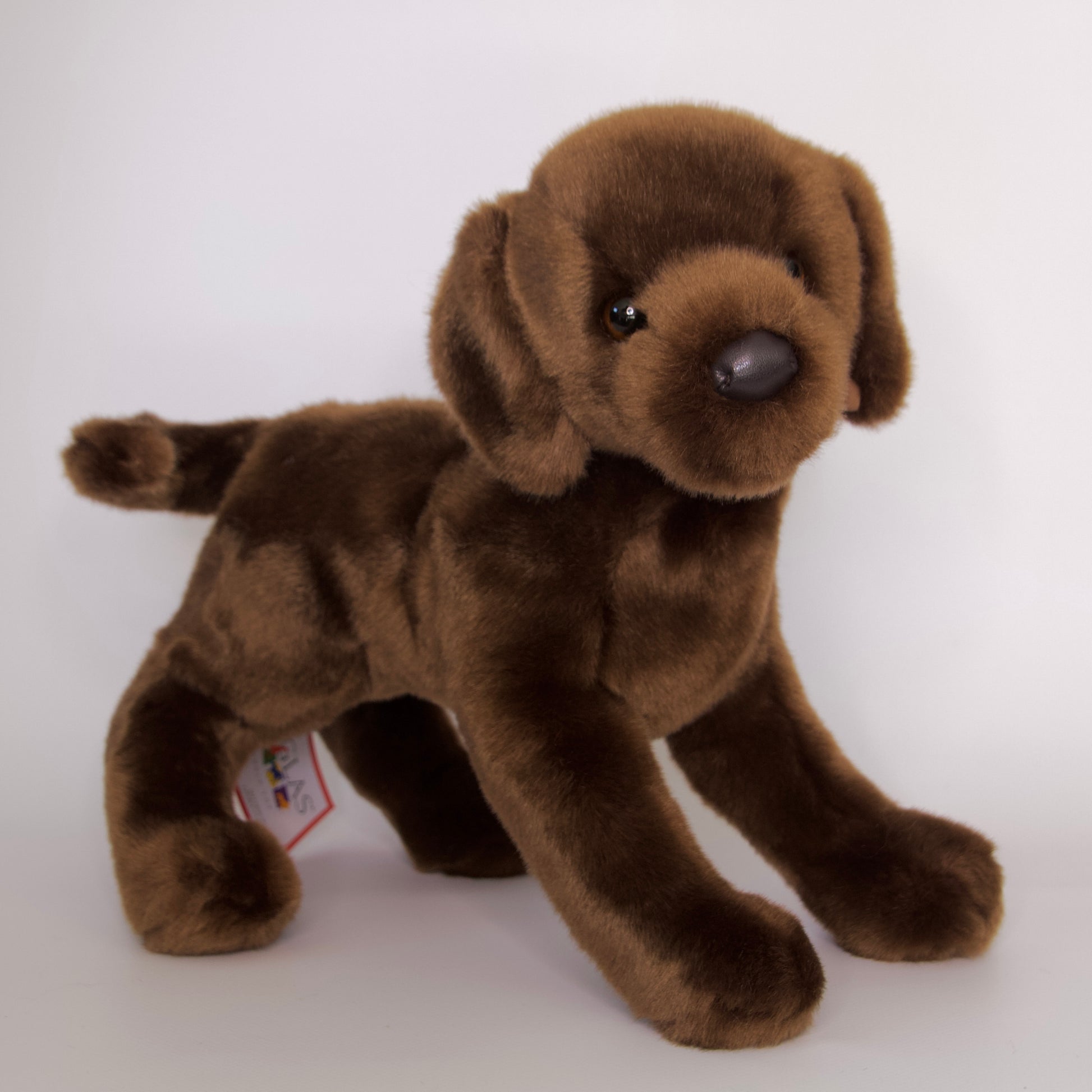 Are you looking for a puppy who’s already housebroken and knows how to sit and stay? Cocoa our Chocolate Lab stuffed animal might be your perfect pet! Featuring a cuddly plush coat of chocolatey brown fur, Cocoa is both realistic and huggable. Interior plastic pellets lend a lifelike weight to this plush toy and her 16 inch size is nearly that of a real puppy! She features a soft, leatherette nose and expressive eyes that will warm your heart. Cocoa’s durable, floppy design is easy to pose and ready for hours of imaginative play. Bring this friendly plush dog home today and she will become a quick favorite of all fans of the loyal Labrador Retriever breed!