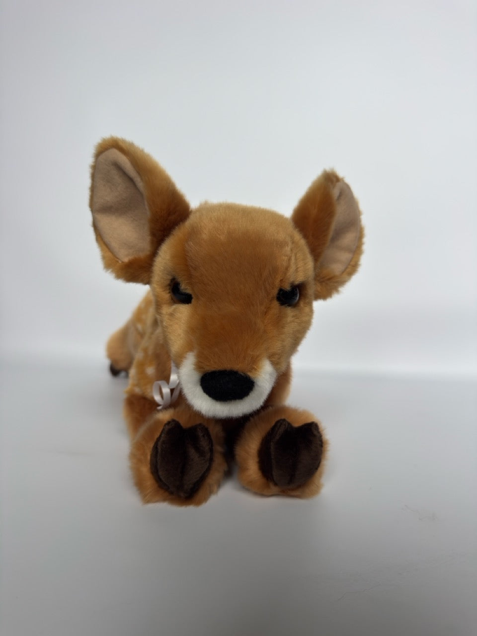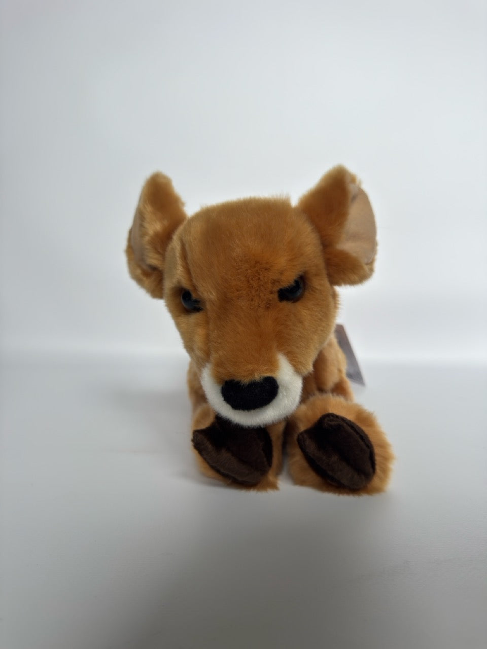 There’s nothing so innocent and sweet as a baby deer and Fern the plush Fawn captures all of the expected charm! Fern’s large, dark eyes are guaranteed to draw in animal lovers of all ages, while her oversized ears only add to her sweet appearance. Just like Fern’s real life counterparts, pale spots dapple the back of our woodland baby. She features a huggable size and a floppy body style that begs for you to pick her up for a hug. Each of her weighted feet are finished with dark brown cloven hooves to lend them a realistic look. With ultra soft plush materials and quality polyester fill that will bounce back again and again, Fern the Fawn stuffed animal will become a fast favorite!