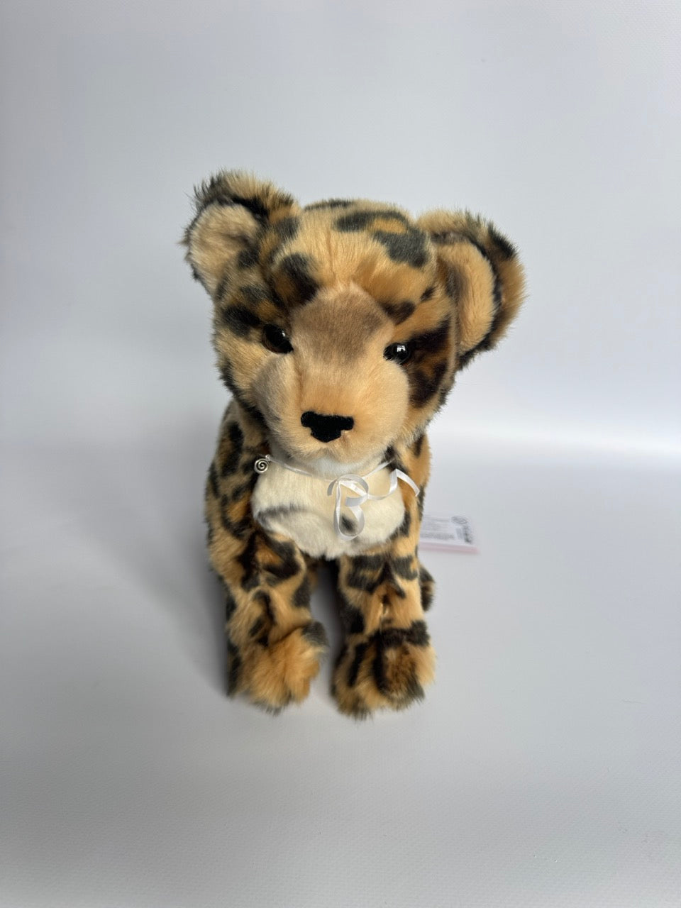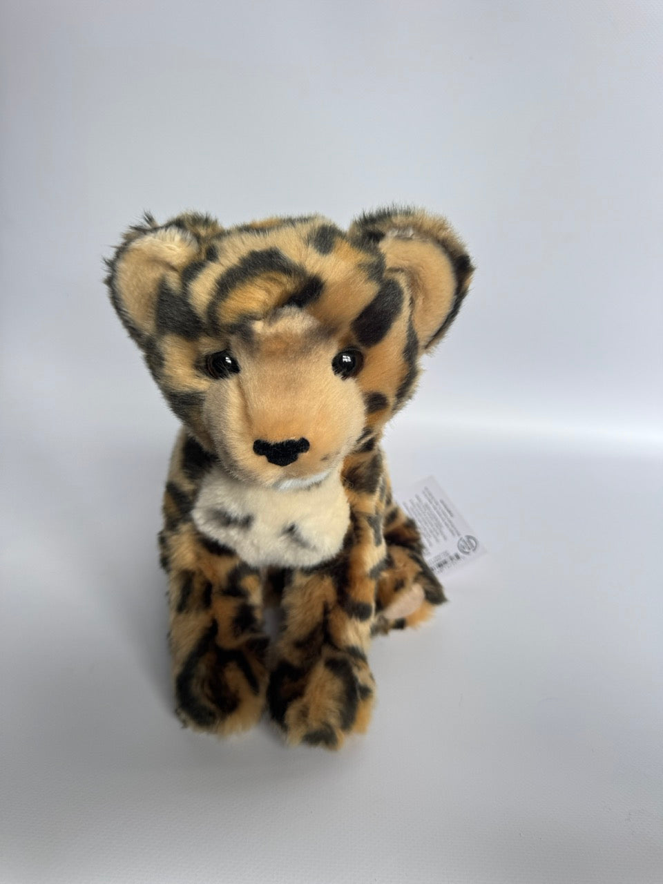 Let our cuddly plush Leopard Cub leap into your heart! Always ready for an adventure, our richly spotted plush cub is an ideal companion for all your jungle expeditions. Crafted with only the cuddliest, high quality plush furs and springy polyester fill, Spatter is luxuriously soft and huggable. His gently weighted, posable body makes him easy to flop into your arms. A soft, flocked nose and bright, amber colored eyes give Spatter his lifelike, endearing expression that will win the hearts of wild cat fans of all ages. Bring home some wild fun with Spatter the playful Leopard Cub stuffed animal!