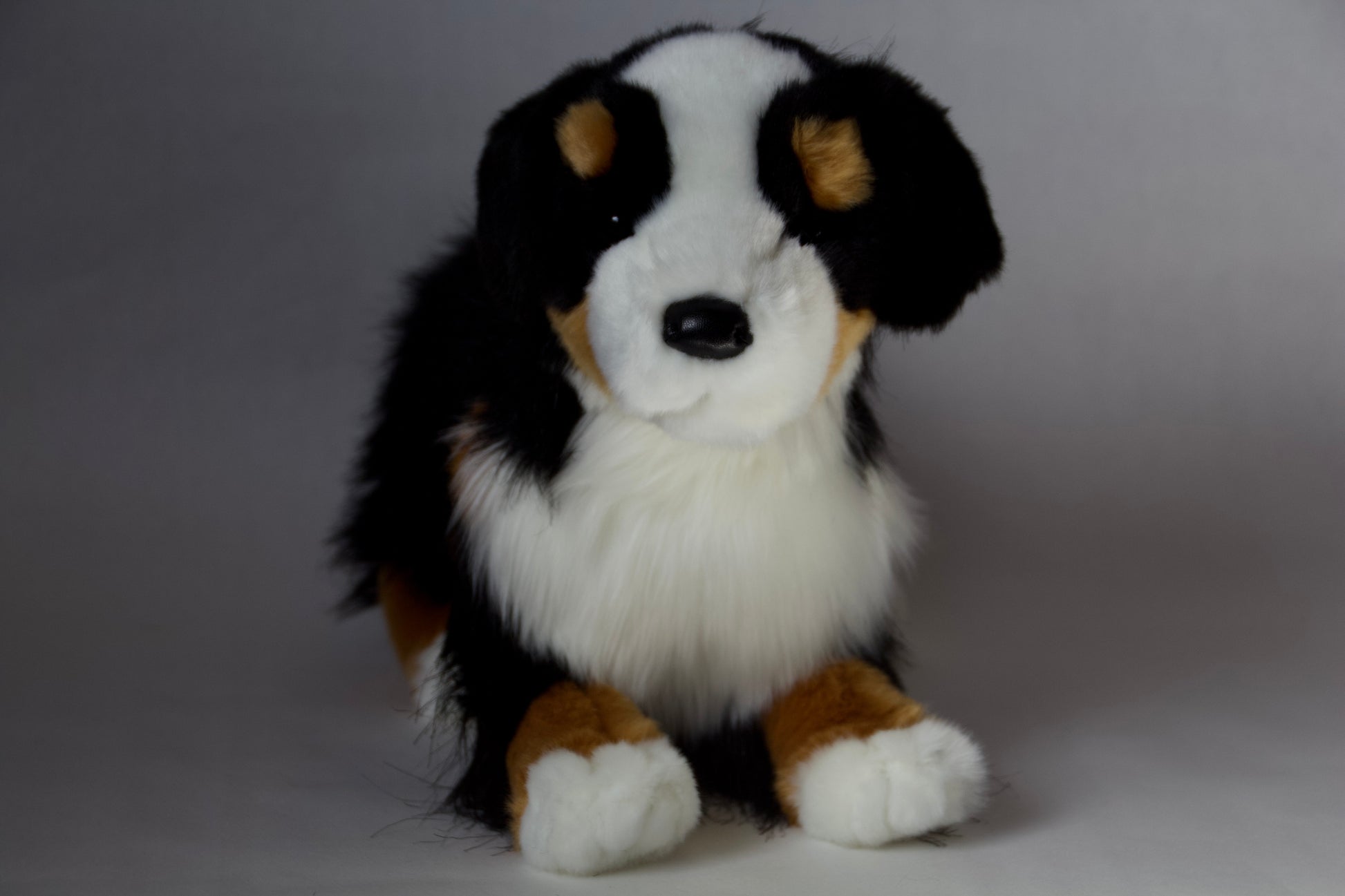 Trevor our plush Bernese Mountain Dog emanates the charm of a real puppy with his rounded features and soulful brown eyes! Featuring a long-haired, tri-colored coat crafted with high quality, designer materials, Trevor is a lifelike plush representation of the handsome Berner breed. Let him steal away your heart with his loving expression and huggably soft body! From his realistic leatherette nose to the end of his white tipped tail, this charming stuffed animal is loaded with details that will please dog aficionados everywhere. An ideal gift for the Bernese Mountain Dog lover in your life or keep him for yourself, Douglas dogs are a “breed apart” so we’re sure Trevor will be an adored companion wherever he goes!